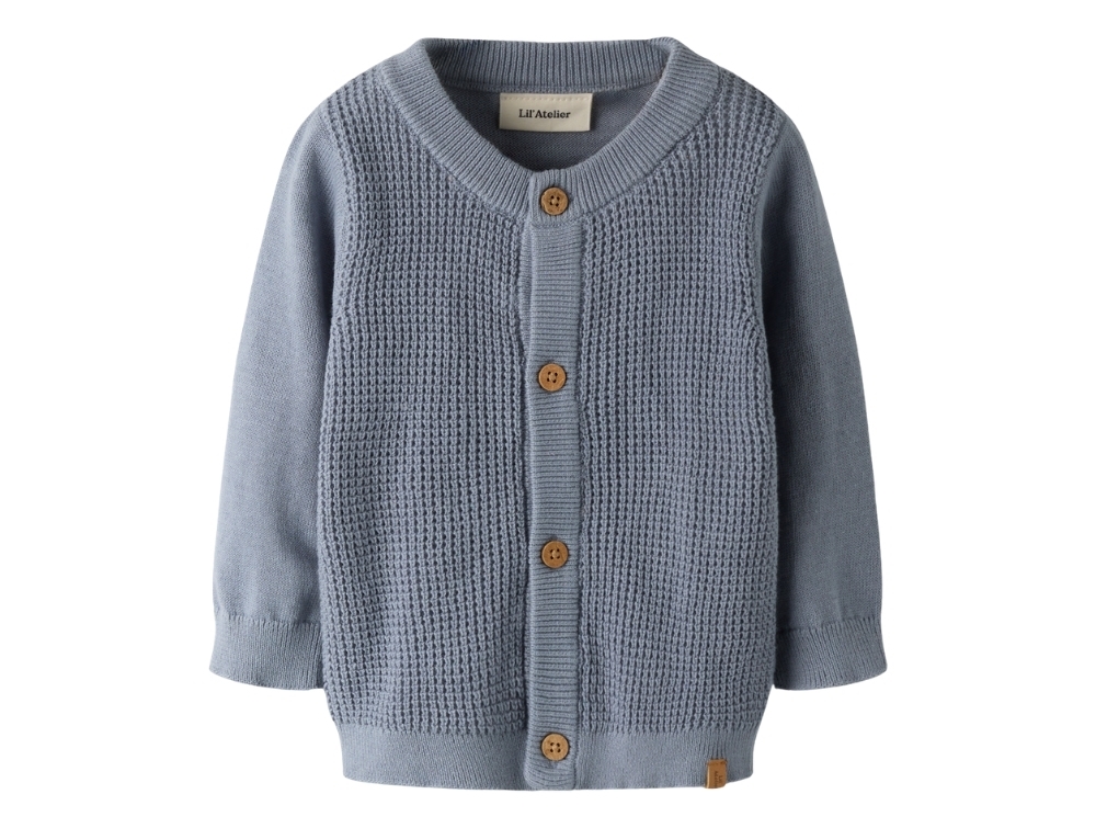 Strikcardigan i blå nuance (Tradewinds) fra Lil' Atelier.