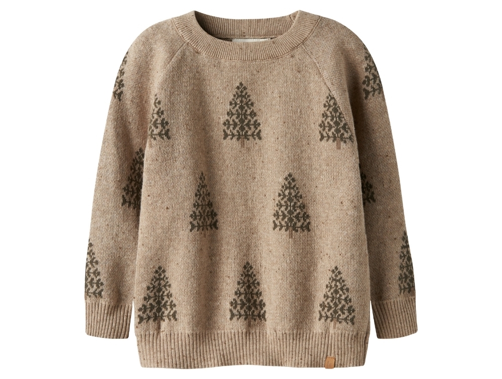Lil' Atelier striktrøje oxford tan med juletræsmønster