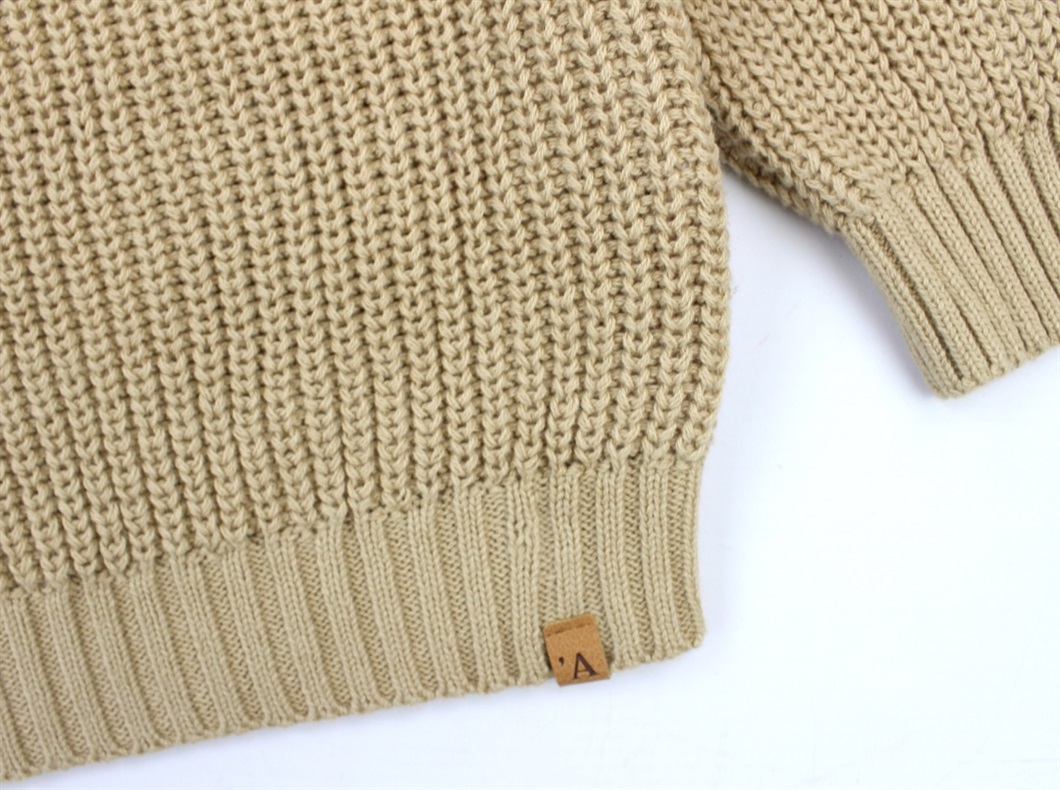 Striktrøje i farven warm sand fra Lil' Atelier.