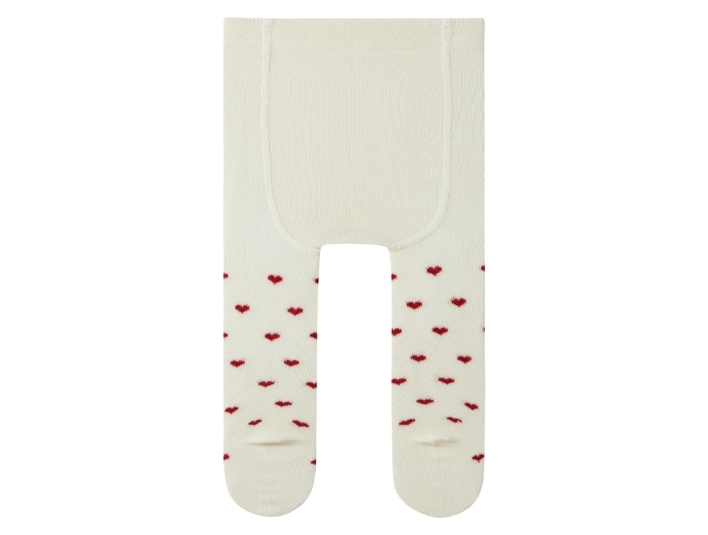 Lil' Atelier strømpebukser i råhvid med røde hjerter