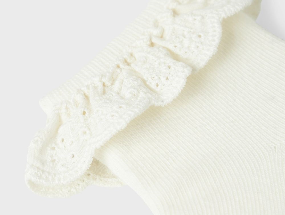 2 par bomuldsstrømper i farven råhvid (coconut milk) med broderie anglaise flæse fra Lil' Atelier.