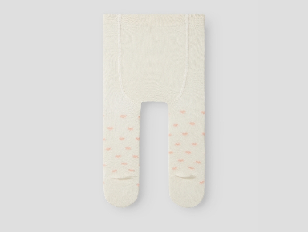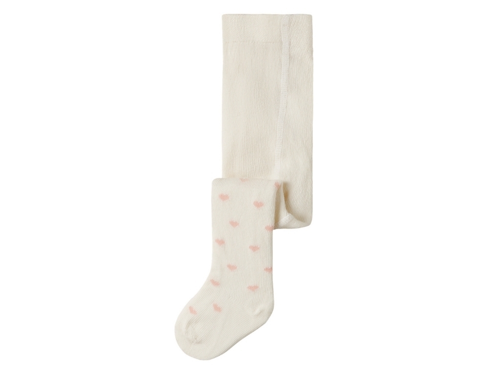 Lil' Atelier strømpebukser i råhvid nuance med lyserøde hjerter