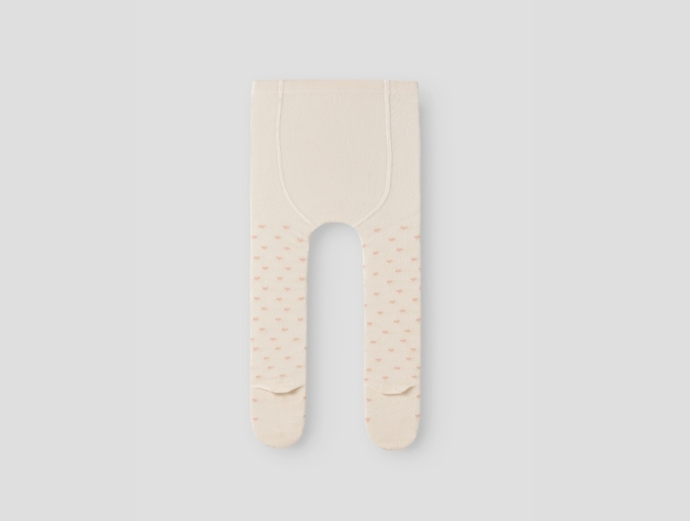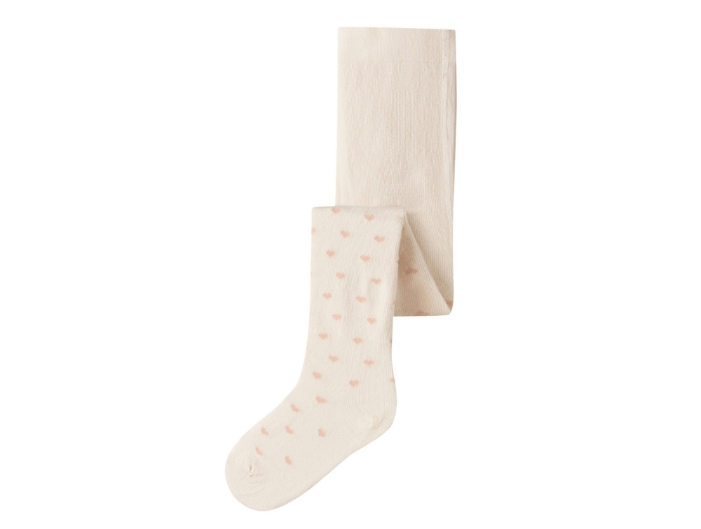 Lil' Atelier strømpebukser i råhvid nuance med lyserøde hjerter