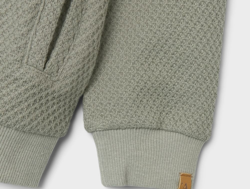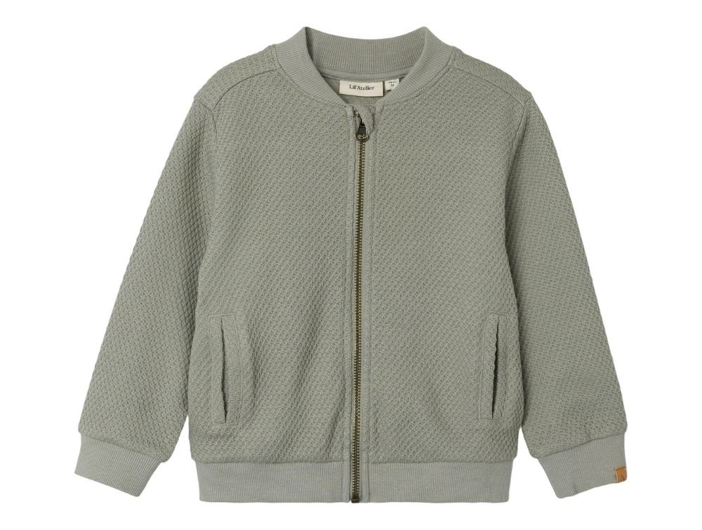 Sweatcardigan i farven forest fog fra Lil' Atelier.