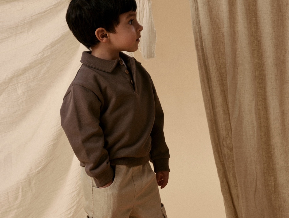 Lil' Atelier sweatshirt shitake med krave og knapper