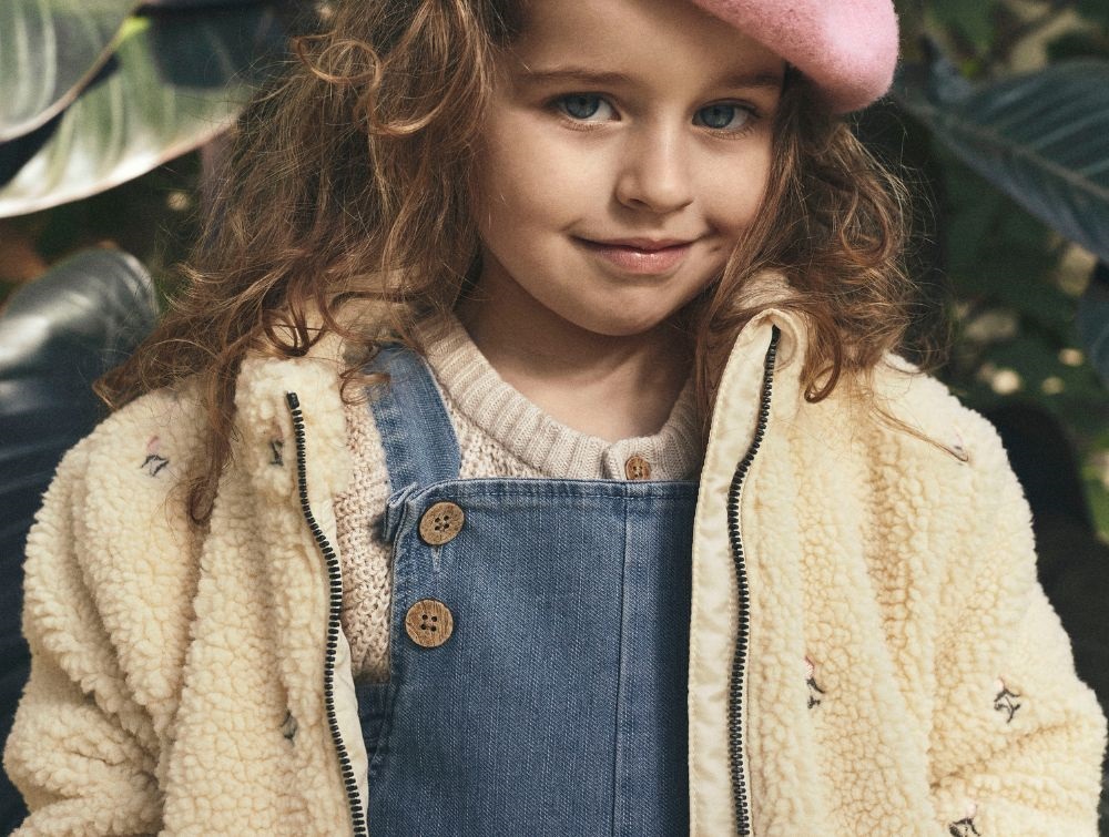 Råhvid (bleached sand) teddyjakke med blomsterbroderi fra Lil' Atelier.