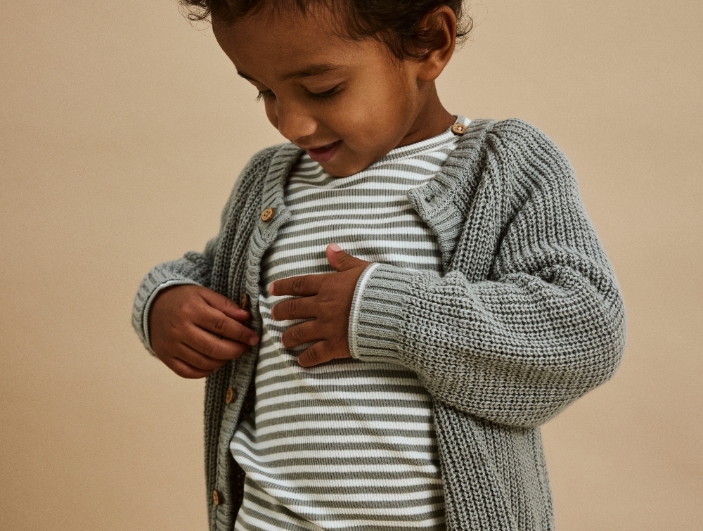 Mere information om Lil' Atelier top limestone med striber og knapper
