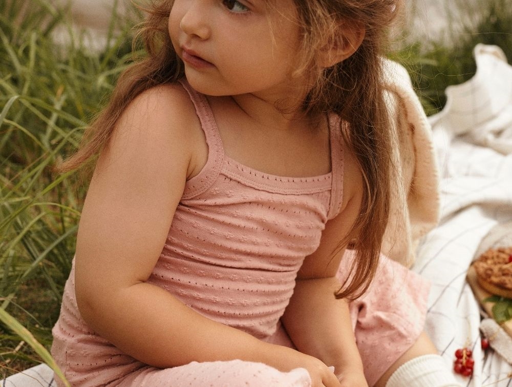 Top i støvet rosa nuance (misty rose) fra Lil' Atelier. Designet med hulmønster og brede stropper.