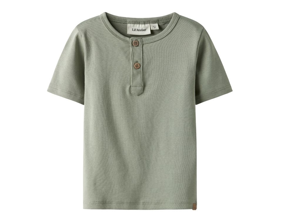 Lil' Atelier t-shirt i støvet grøn med knapper i halsen