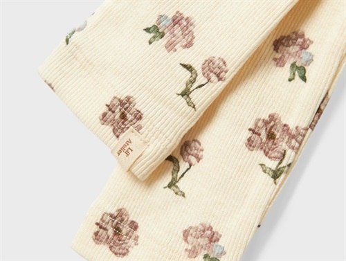 Leggings i farven turtledove med blomsterprint og flæse fra Lil' Atelier.