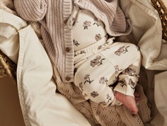 Kjole i farven turtledove med olivenprint fra Lil' Atelier. Produceret i 57% økologisk bomuld, 38% TENCEL™ Lyocell og 5% elastan.