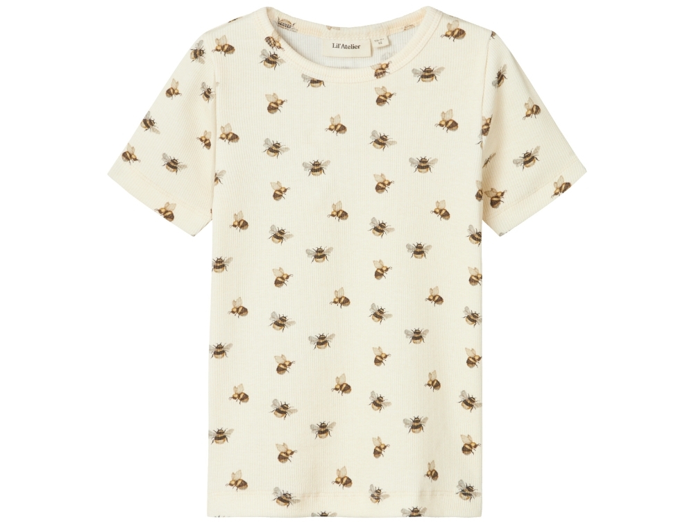Kortærmet top i farven turtledove med det sødeste print af brumbasser fra Lil' Atelier.