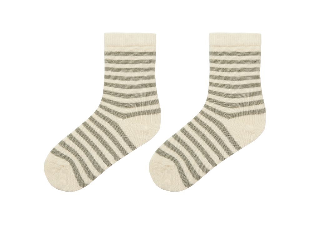 To par råhvid og grøn stripede strømper fra Lil Atelier turtledove forest fog  13241168 Lil Atelier turtledove/forest fog stribede strømper bomuld (2-pak)Råhvid og grøn stripet strømpe fra Lil Atelier turtledove forest fog  13241168