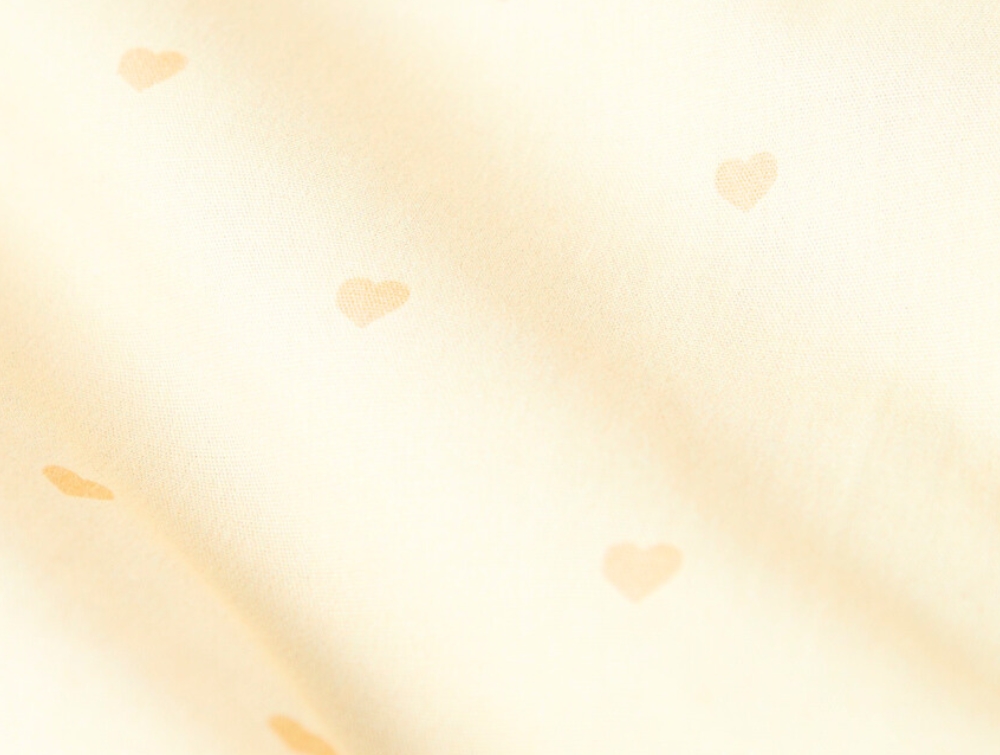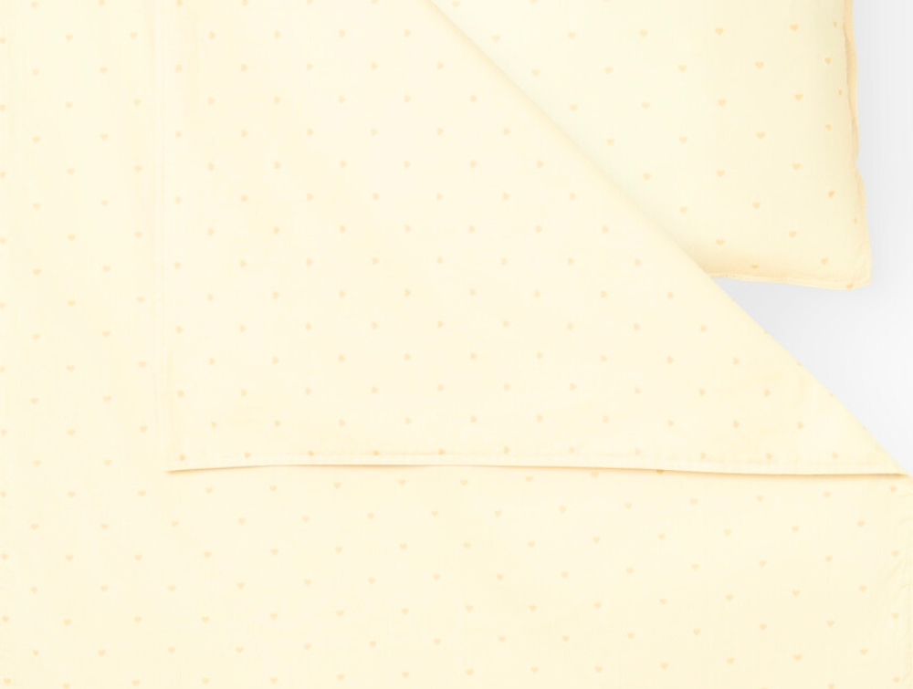 Sengetøjet er lavet i farven turtledove med hjerteprint.