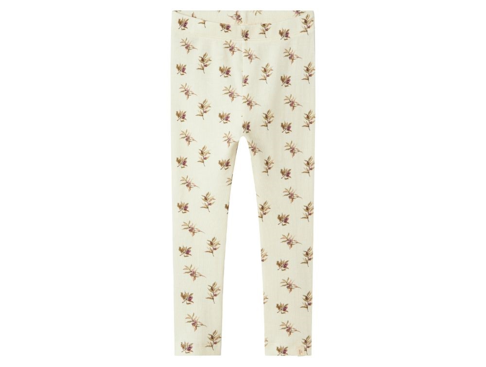 Leggings i farven turtledove med olivenprint fra Lil' Atelier. Produceret i 57% økologisk bomuld, 38% TENCEL™ Lyocell og 5% elastan.