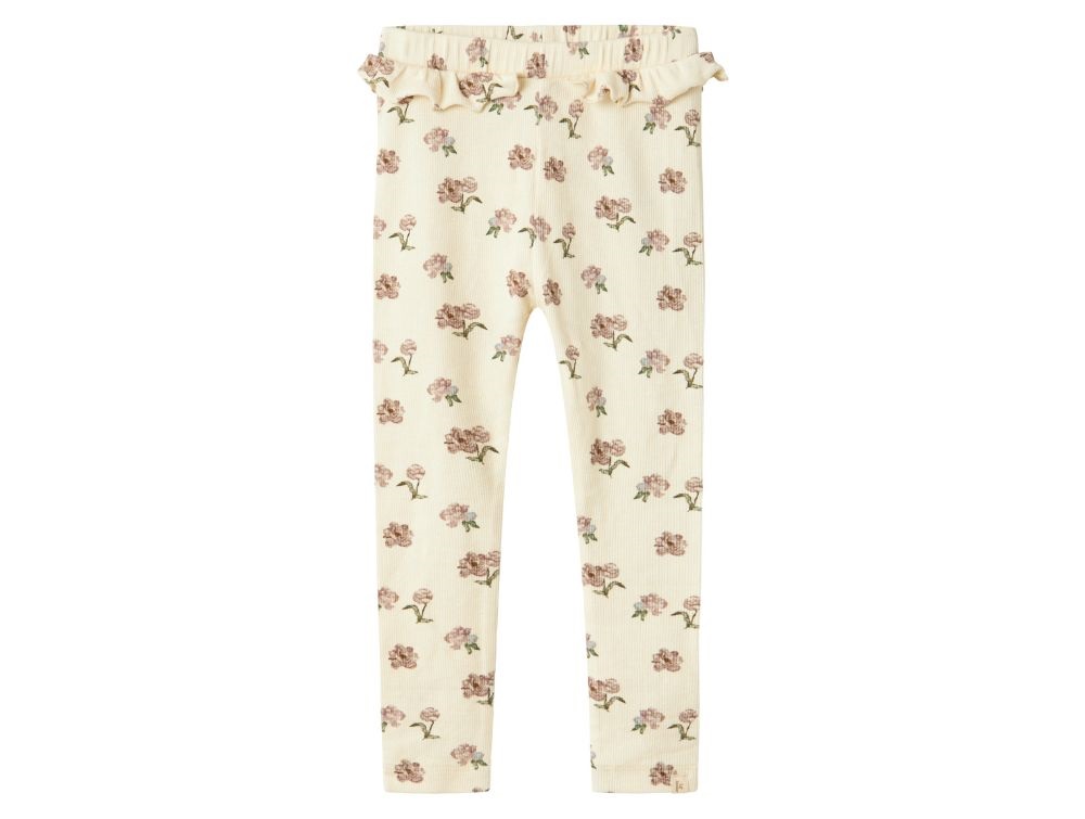 Leggings i farven turtledove med blomsterprint og flæse fra Lil' Atelier.