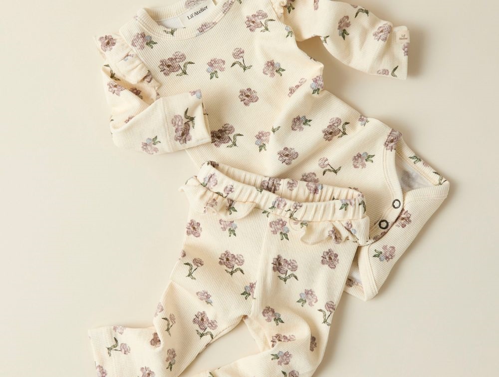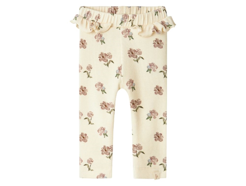 Leggings i farven turtledove med blomsterprint og flæse fra Lil' Atelier.