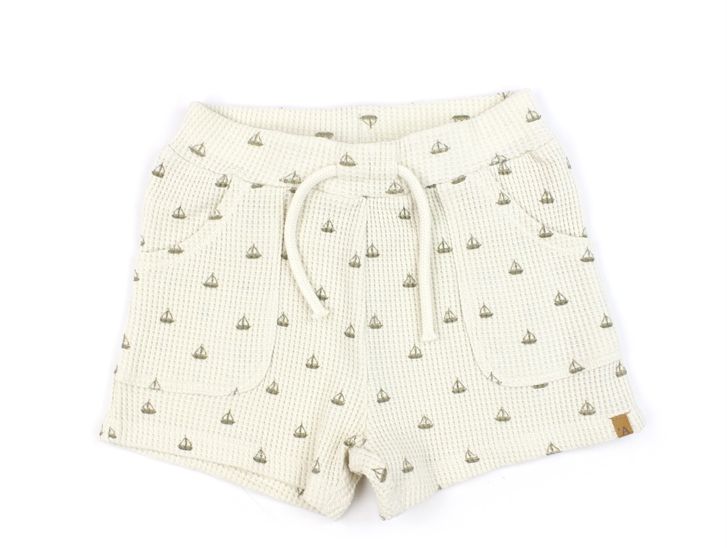 Shorts i farven turtledove med det kæreste print af sejlbåde fra Lil' Atelier.