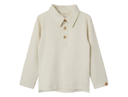 Top i råhvid nuance fra Lil' Atelier med skjortekrave og træknapper på brystet.