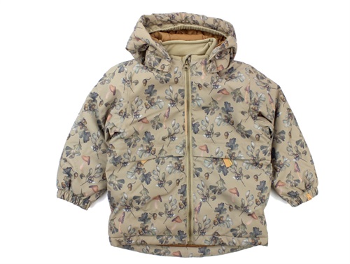 Vinterjakke i farven elmwood med skønt print fra Lil' Atelier. Jakken har en aftagelig hætte med trykknapper.