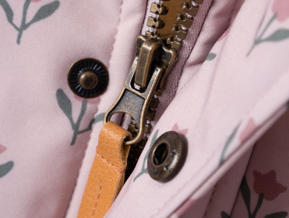 Jakken har to lommer med lynlås og lukkes med lynlås og knapper.