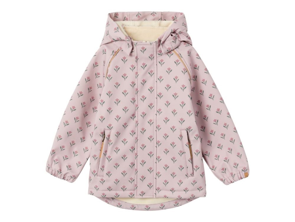 Softshell jakke i farven violet ice med blomsterprint og fleecefoer fra Lil' Atelier.