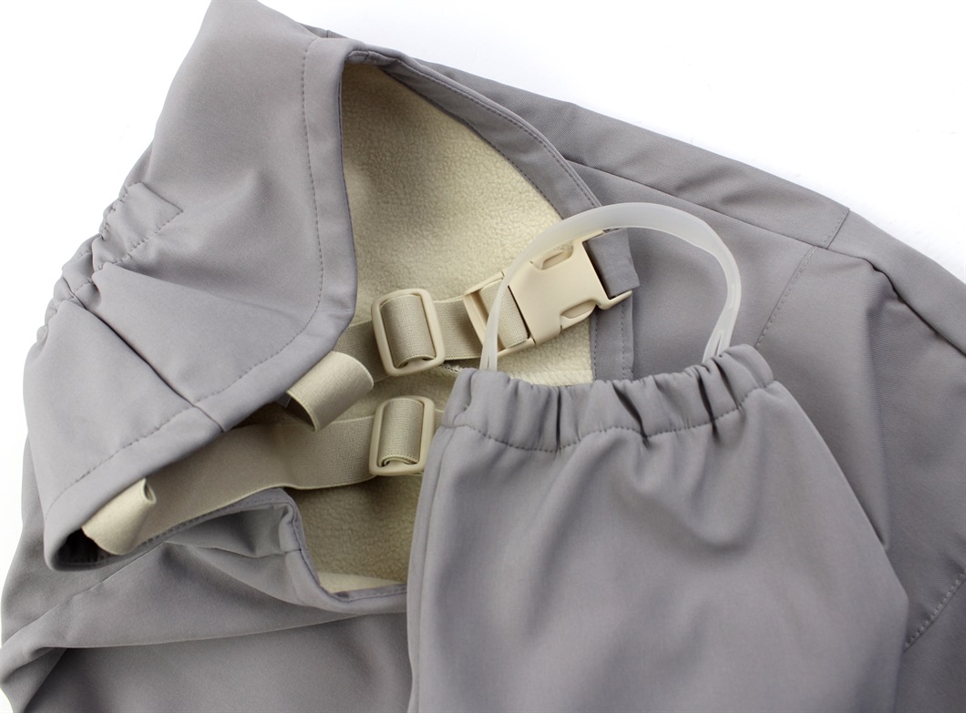 Bukserne i softshell har fleecefoer, justerbar seler, fodstropper og ekstra beskyttelse på knæ og bagdel.