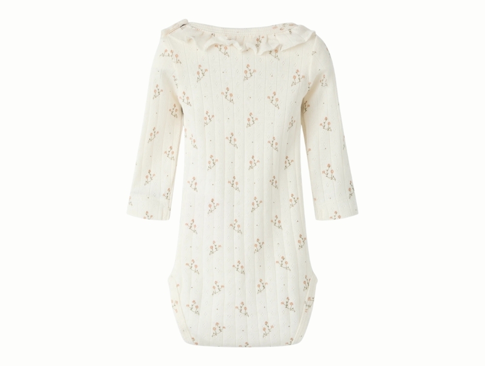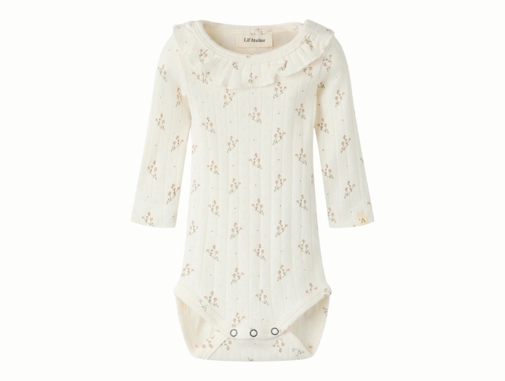 Lil' Atelier body i råhvid nuance med blomsterprint og flæse