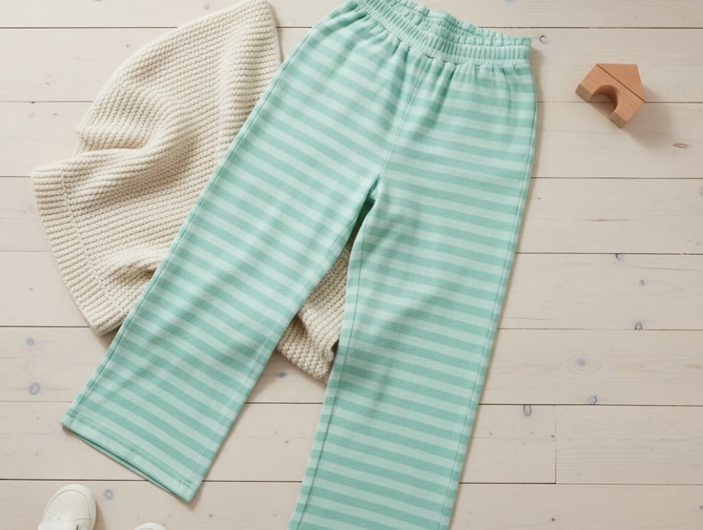Bukserne har elastik i linningen med en lille flæse langs kanten.
