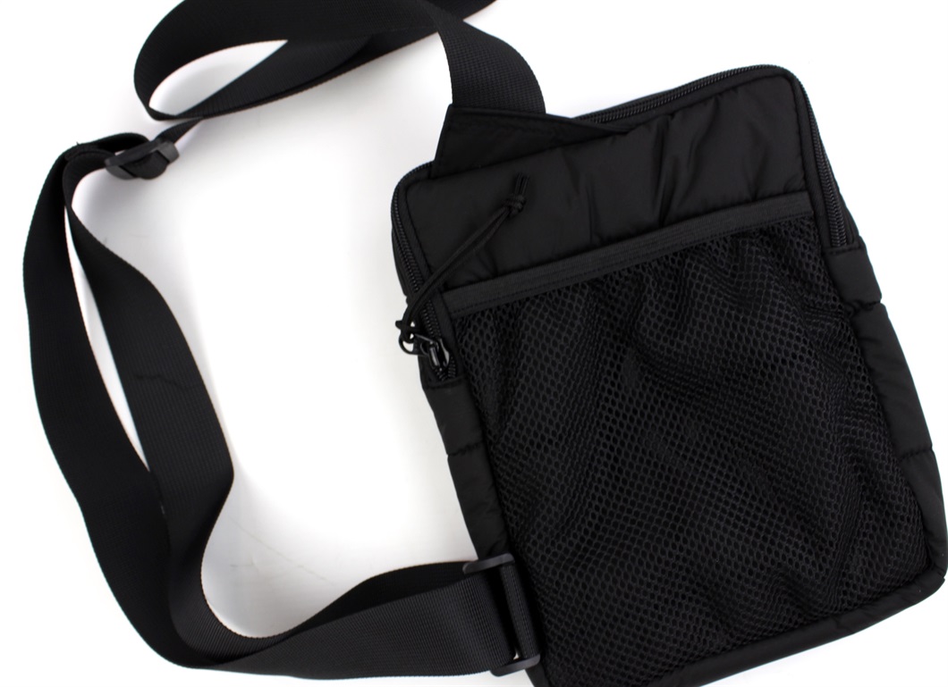 Tasken er blød og puffy og måler ca 23 x 19 x 3 cm.