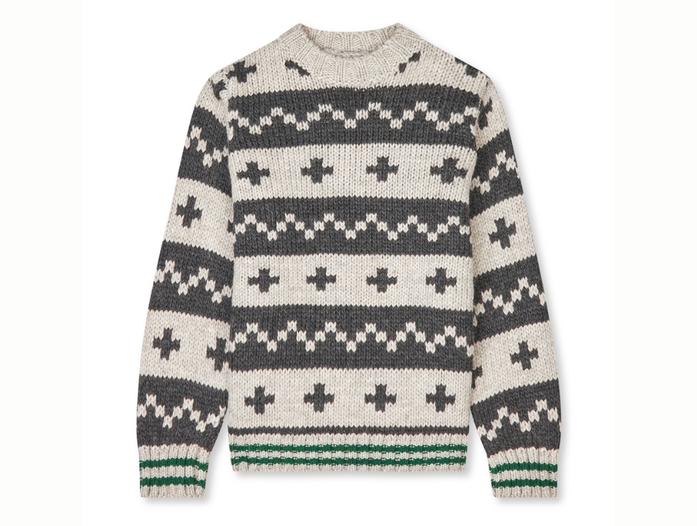 Striktrøje i en lys nature melange nuance fra Mads Nørgaard med mørkegråt mønster.
