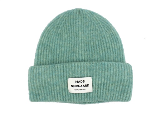 Huen er rustikt patentstrikket og har et logo-label. Anju huen er populær blandt voksne og større børn