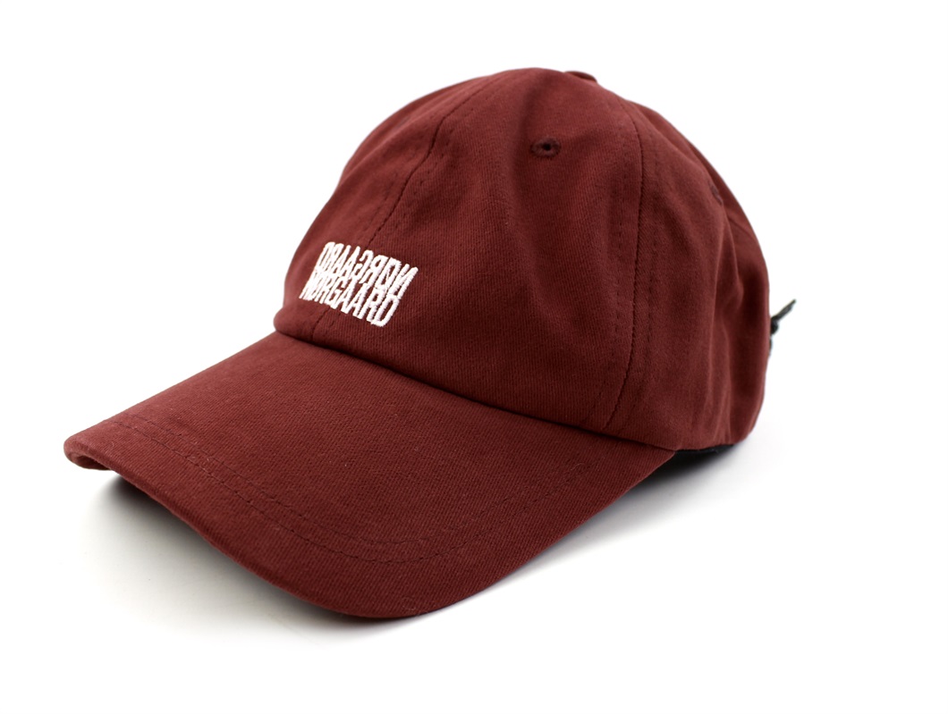 Kasket i farven hot chocolate med logo-tekst fra Mads Nørgaard.