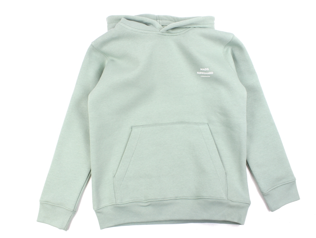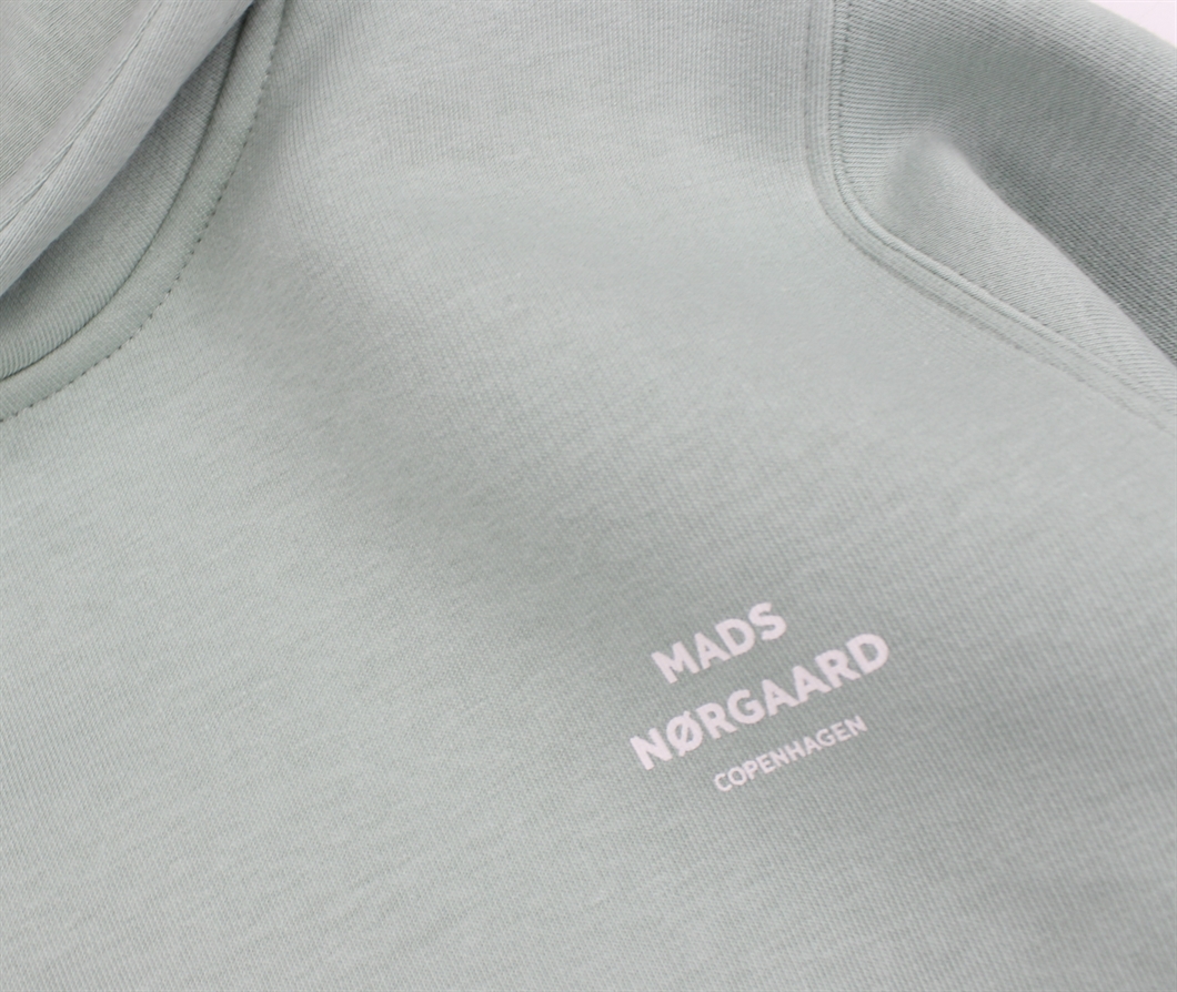 Sweatshirt i farven jadeite med hætte og logo fra Mads Nørgaard.