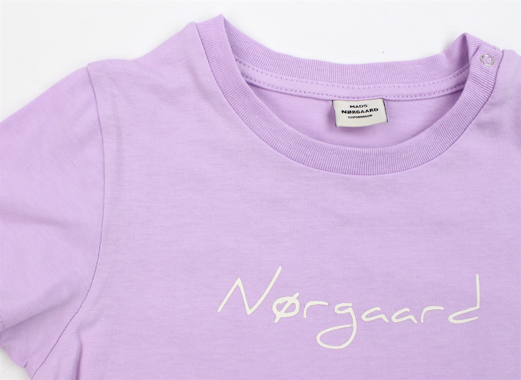 T-shirt i farven lavendula med logoprint fra Mads Nørgaard.