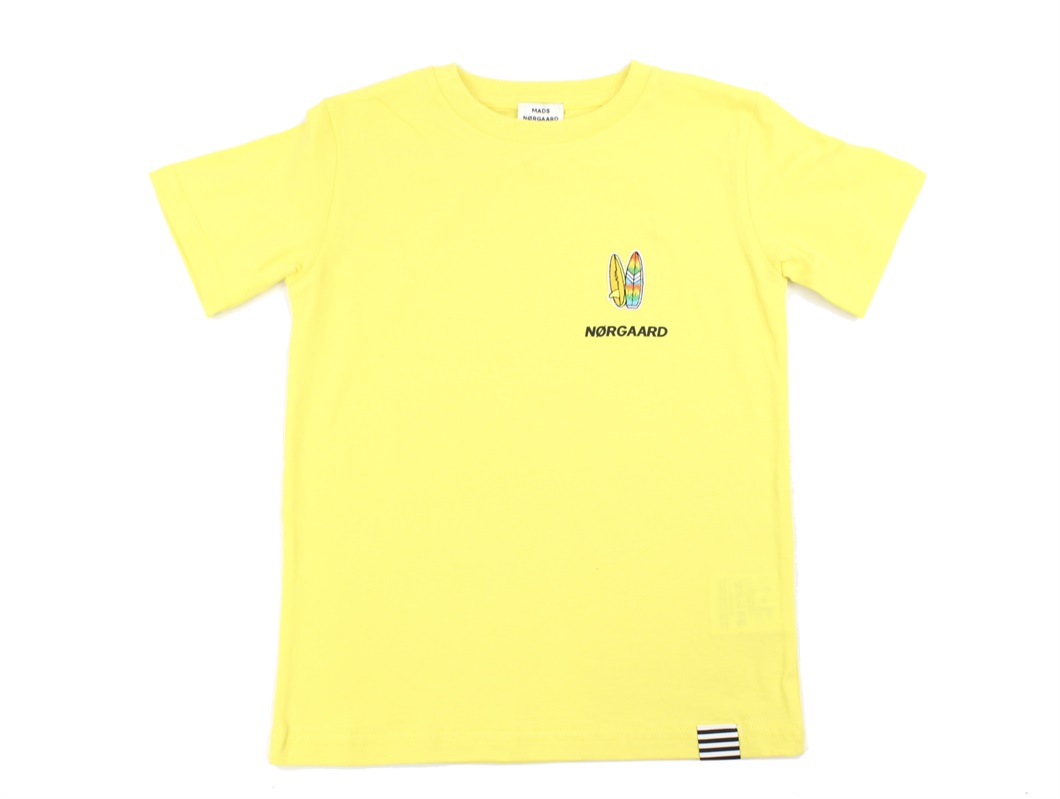 T-shirt i farven lemon zest med logo og badge fra Mads Nørgaard.