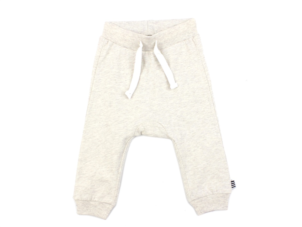 Bløde babybukser i økologisk bomuld i loose fit med elastik og bindebånd i linningen fra Mads Nørgaard.