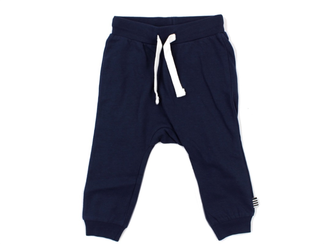 Bløde babybukser i økologisk bomuld i loose fit med elastik i taljen fra Mads Nørgaard.
