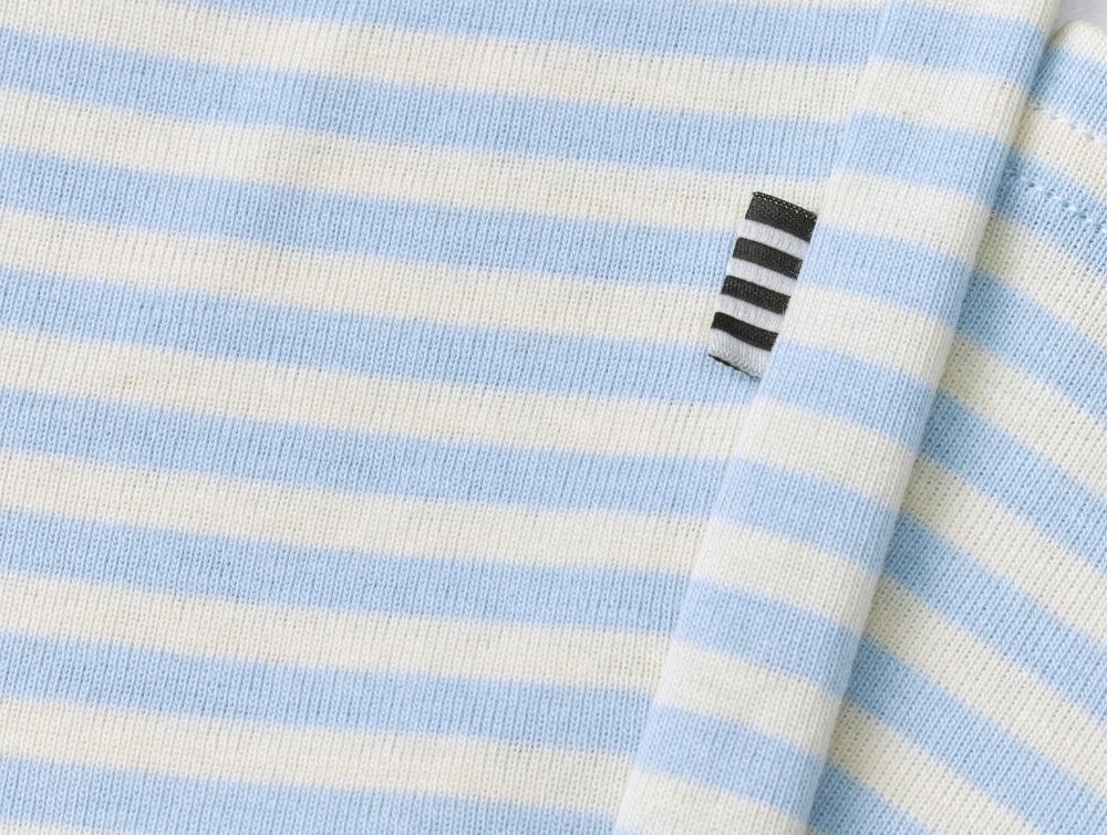 Bløde og strækbare leggings fra Mads Nørgaard med klassiske striber i lyseblå og råhvid. Designet har en tætsiddende pasform og en elastisk talje, der sikrer en behagelig og fleksibel pasform.
