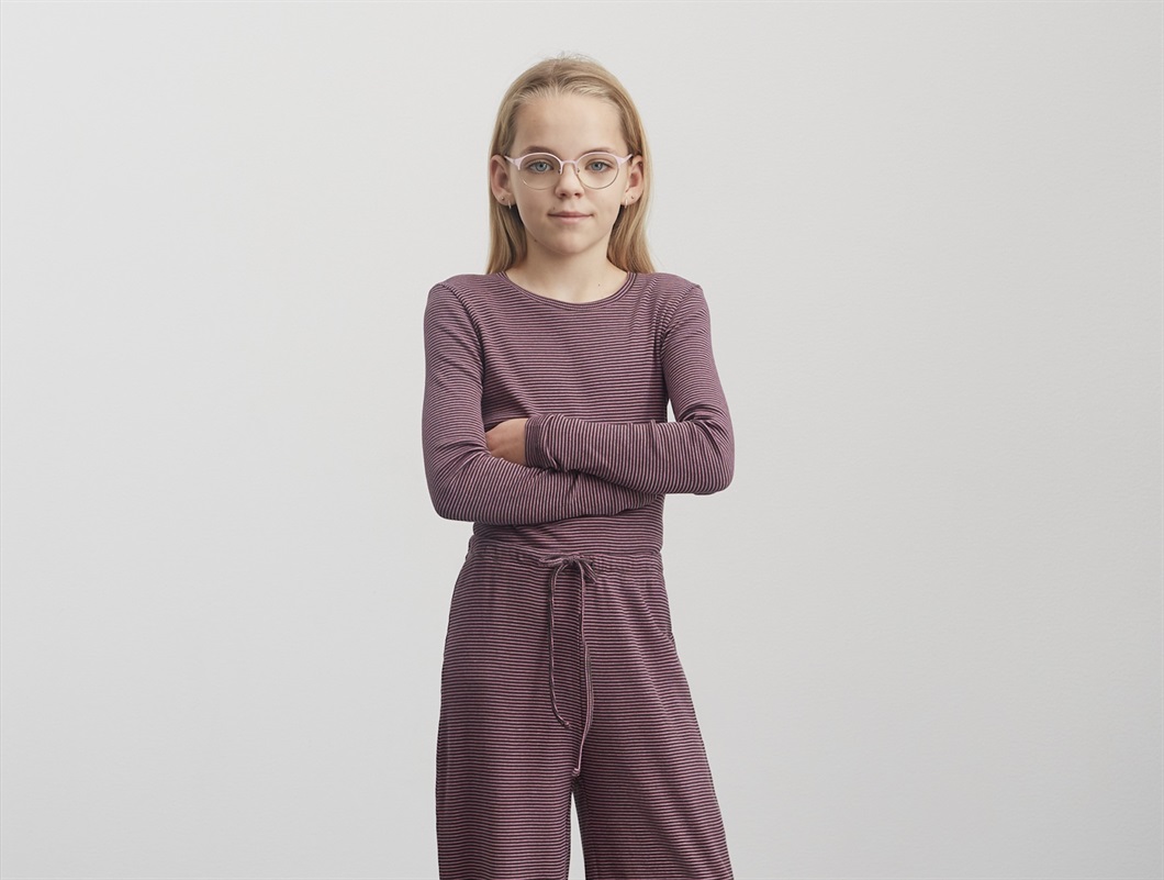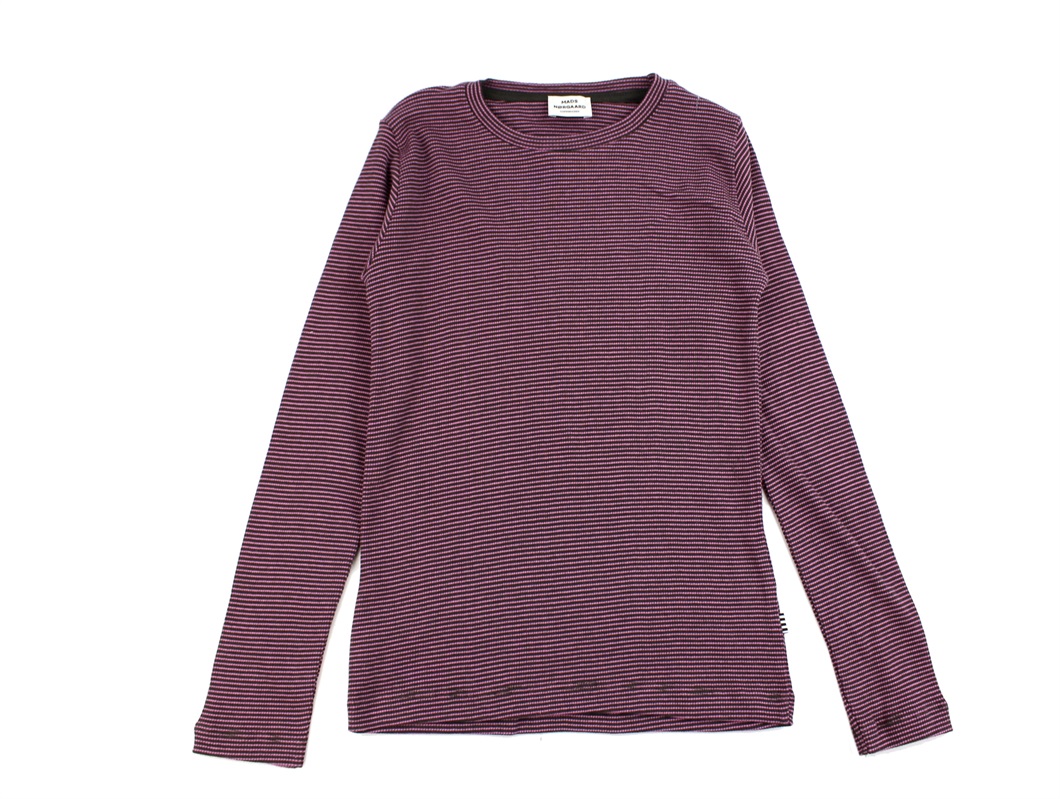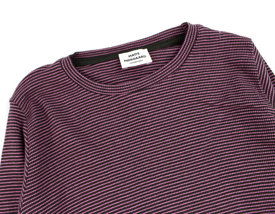 Blød stribet top i farverne rosin og camine rose fra Mads Nørgaard.