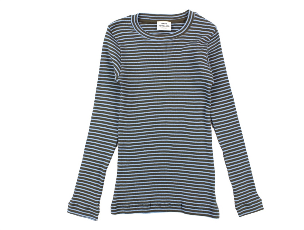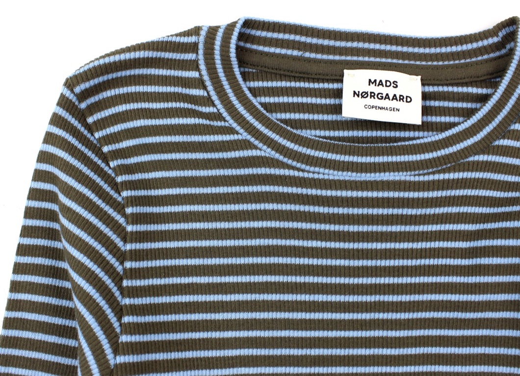 Stribet top i farverne della robbia blue og forest night fra Mads Nørgaard i ribkvalitet.