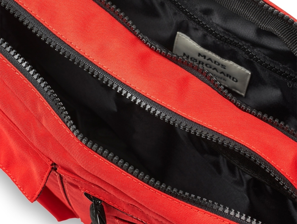 200140-2989-mads-norgaard-cappa-taske-fiery-red-indvendigMads Nørgaard Cappa taske rød set oppefra med lynlås og rum