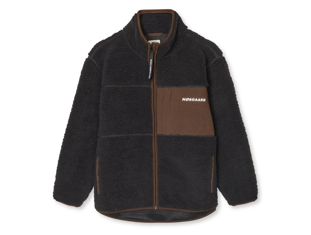 Mads Nørgaard jeffo fleecejakke sort med brun brystlomme