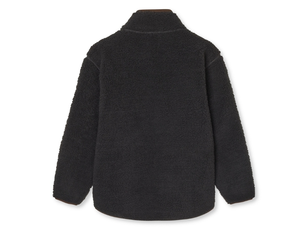 Mads Nørgaard fleecejakke i sort med brun brystlomme og høj krave