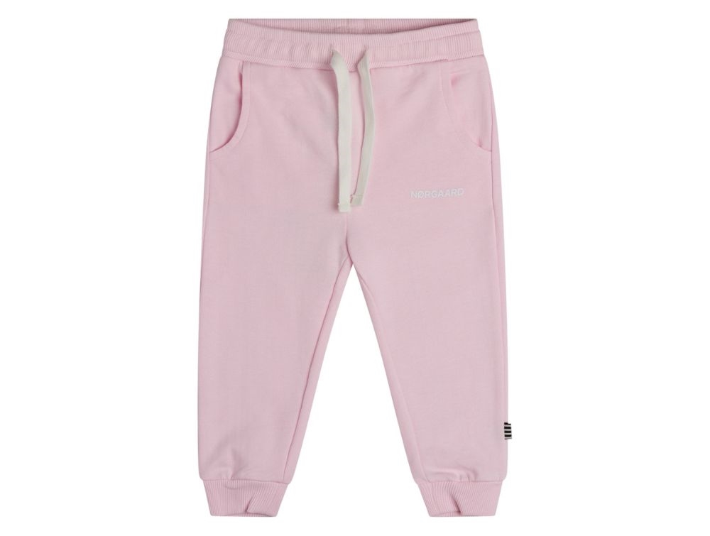 Sweatpants i lys rosa (pink) fra Mads Nørgaard med bindebånd og ribkanter.