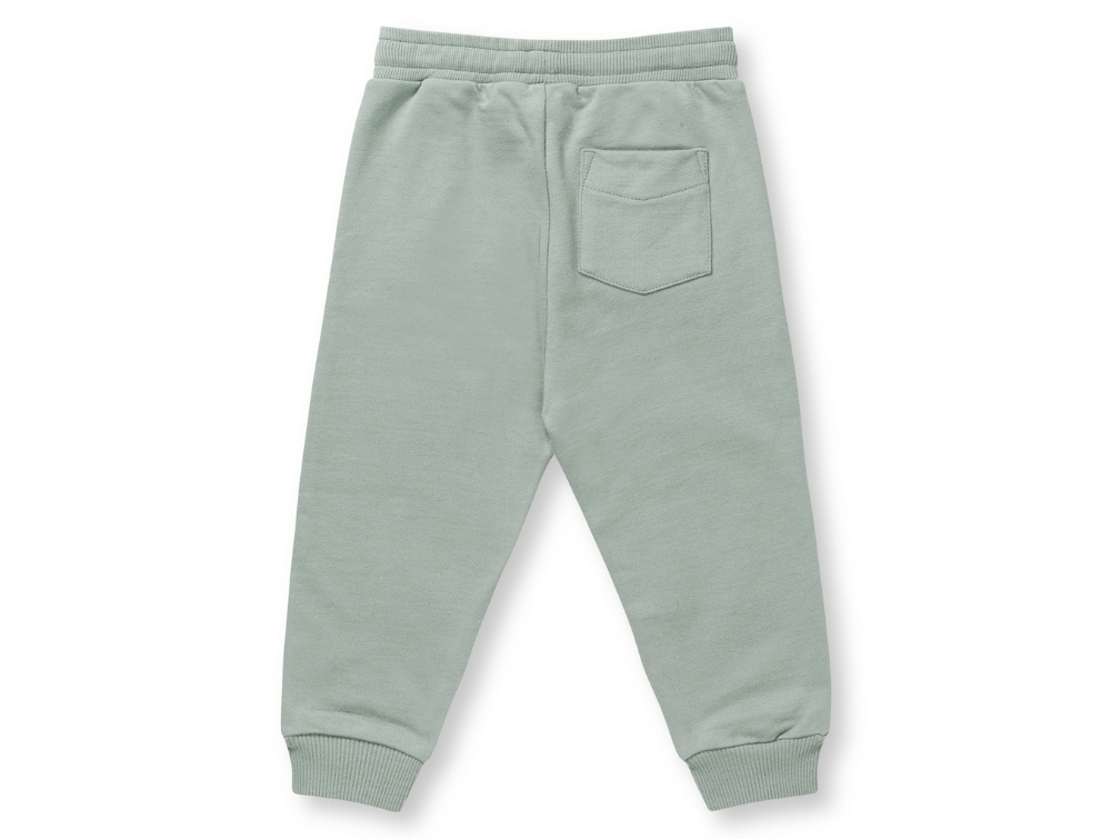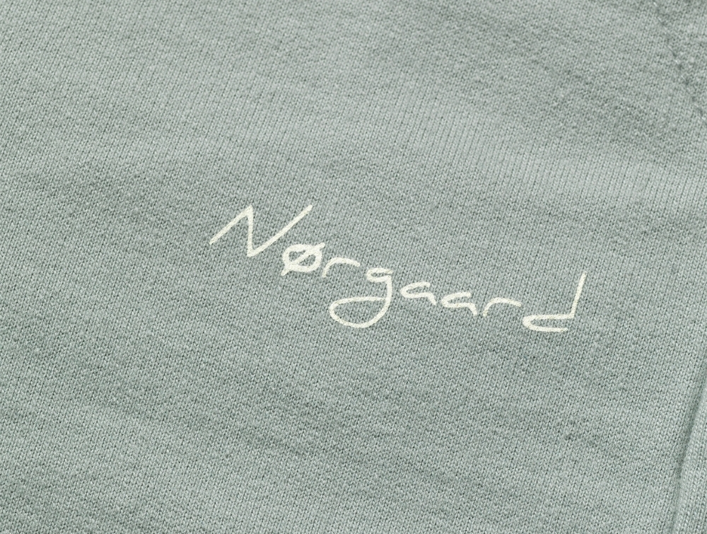 Sweatpants i støvet grøn (slate grey) fra Mads Nørgaard med hvidt logoprint.