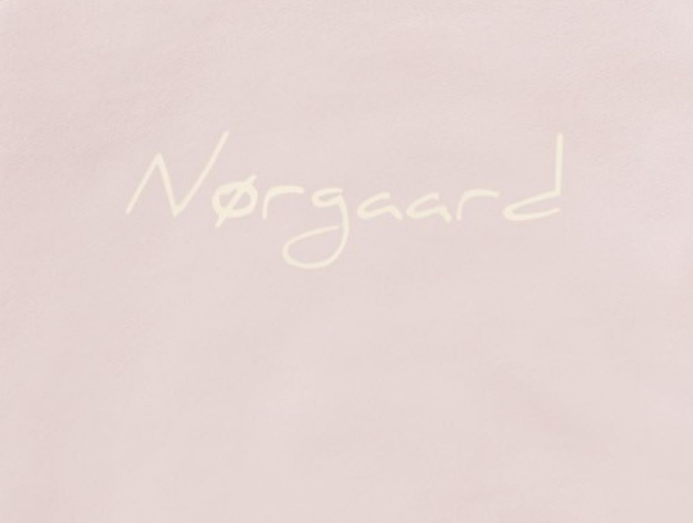sweatshirt fra Mads Nørgaard i heavenly pink med hvidt logoprintbagside af lyserød sweatshirt fra Mads Nørgaard i farven heavenly pinkcloseup af hvidt logoprint på heavenly pink sweatshirt fra Mads Nørgaard