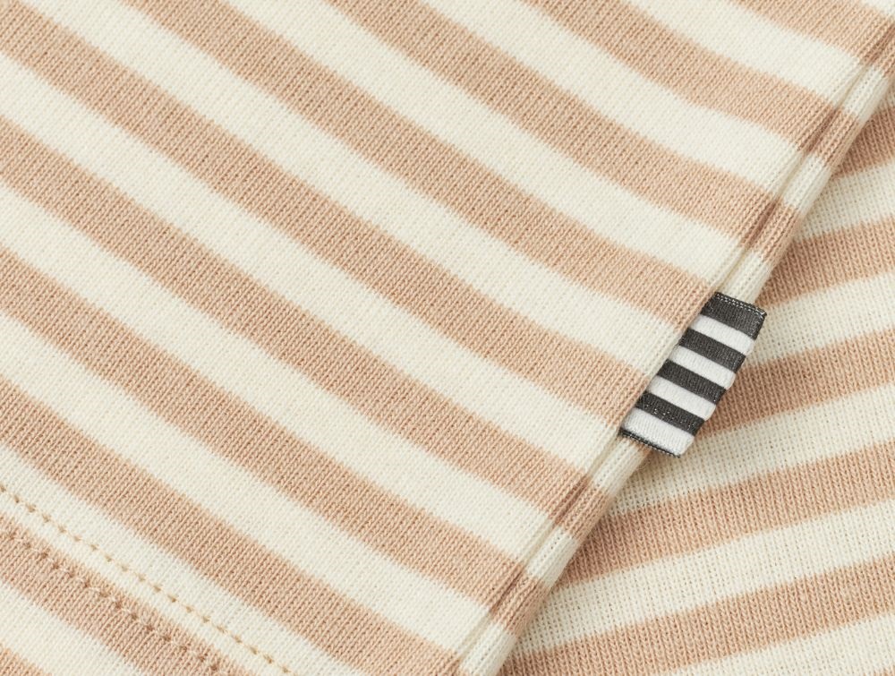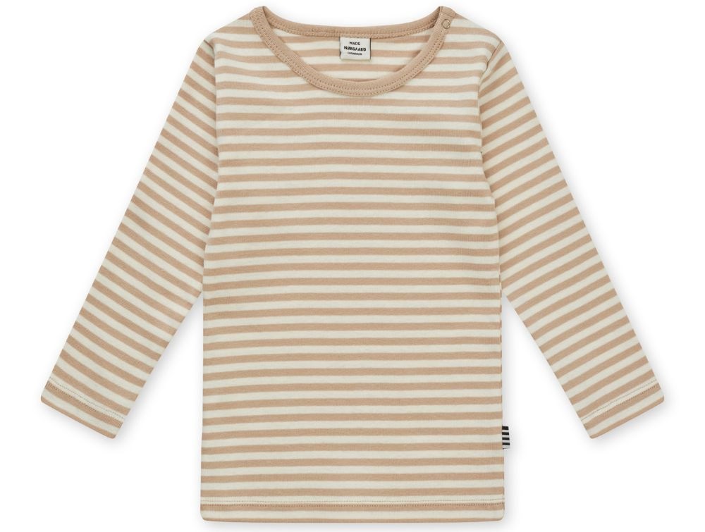 langærmet t-shirt fra Mads Nørgaard i beige og råhvide stribernærbillede af beige og råhvide stribet t-shirt fra Mads Nørgaard