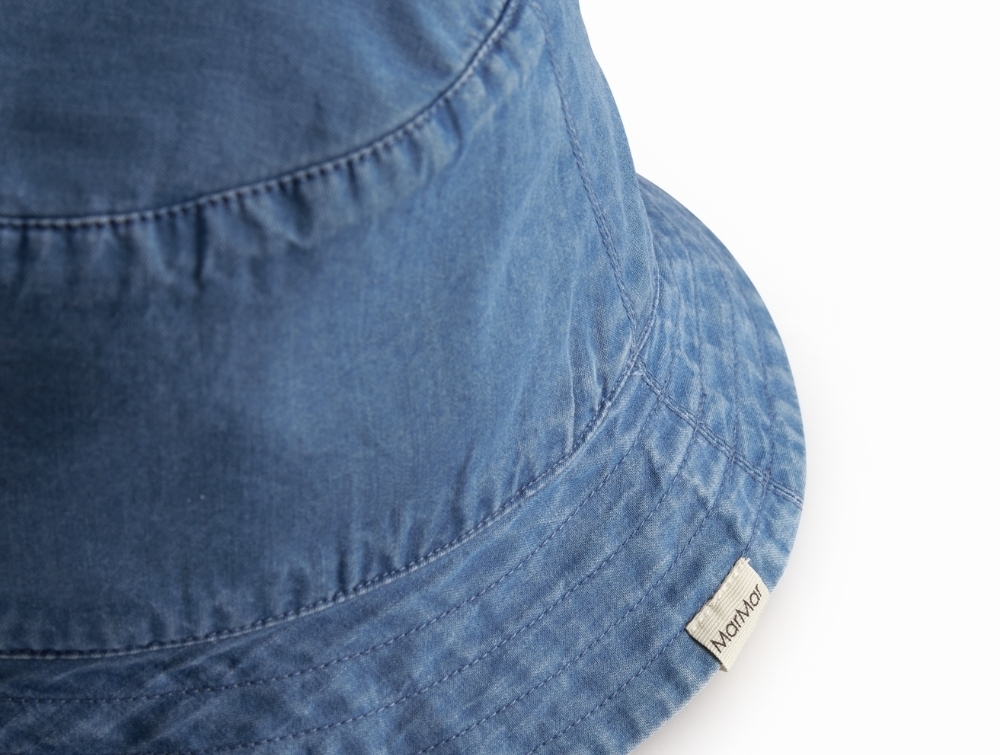 MarMar bøllehat i blue denimMarMar Arida bøllehat i blå denim på barnMarMar denim bøllehat med bred skyggeMarMar bøllehat set fra siden i blue denim