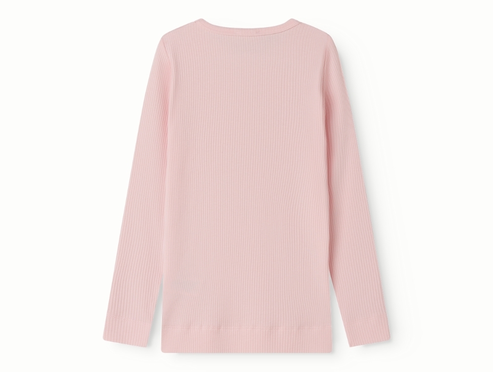 Materialet er let og åndbart og velegnet som inderste lag året rundt. Ribstrukturen giver blusen en naturlig strækbarhed, så den følger barnets bevægelser.
